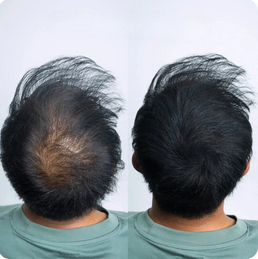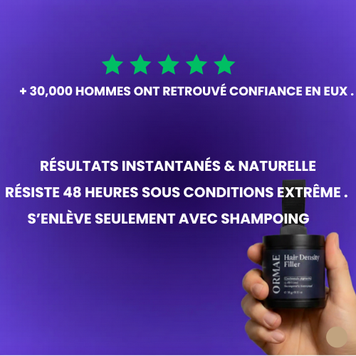 Même les zones qui semblent totalement dégarnies possèdent encore des cheveux ultra-fins ou très clairs, invisibles à l’œil nu. Les pigments d’Ormae se fixent sur ces cheveux microscopiques afin de combler les zones clairsemées et recréer une densité naturelle.