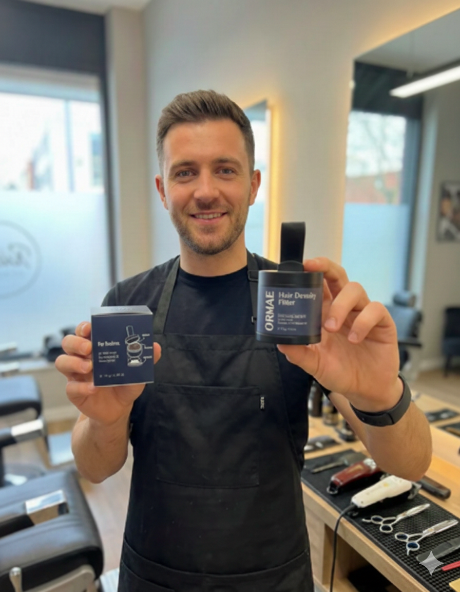 « Chez Le Barbier Moderne, nous cherchons toujours des solutions esthétiques qui respectent l’identité de nos clients. ORMAE est devenu un allié indispensable : il masque les zones dégarnies de manière naturelle et subtile, même sur des textures de cheveux variées. Nos clients repartent toujours plus confiants, sans effet artificiel. »