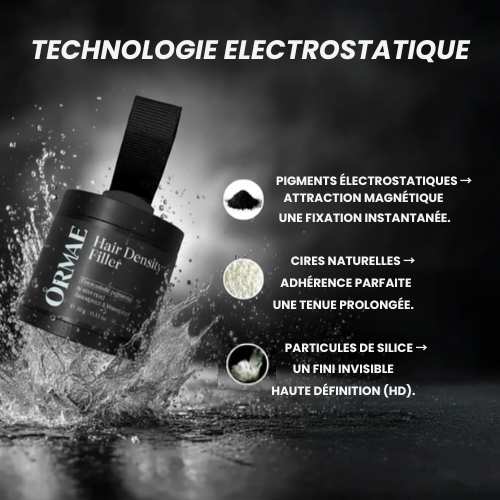 La poudre ORMAE est une solution innovante composée de fibres naturelles qui se fixent instantanément à vos cheveux grâce à l'électricité statique. Elle permet de camoufler les zones clairsemées, les racines ou d’apporter du volume en seulement 10 secondes.